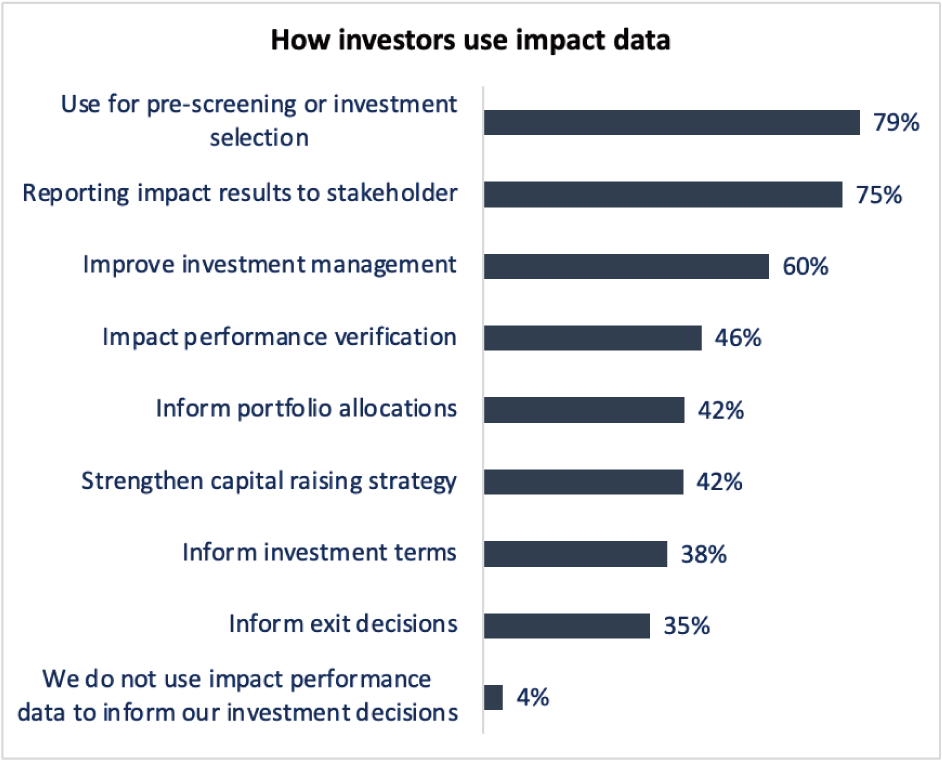 只有42%的影響力投資者使用影響力數據來指導投資組合分配,而在投資組合層面為影響力而管理是影響力投資者之間普遍存在的挑戰。造成這種情況的原因包括比較不同地理區域和產業投資的挑戰,以及在投資組合中識別共同指標的困難。