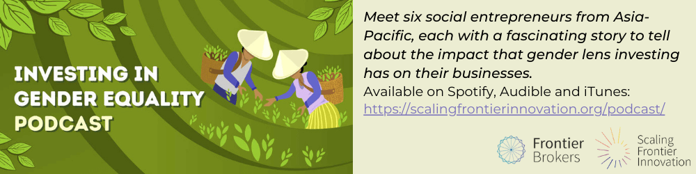 最近,澳洲政府資助了七家亞太地區的投資公司,集結資源、想法和網路,提高人民對性別視角投資價值的意識。身為影響力投資先驅的Frontier Brokers Network希望分享他們在這一領域的經驗,鼓勵其他人加入這個運動。他們共同建立了資源,幫助投資者和組織認識並建立性別視角投資方面的能力,這些資源包含影片、podcasts、出版物和資訊手冊皆可線上免費取得。